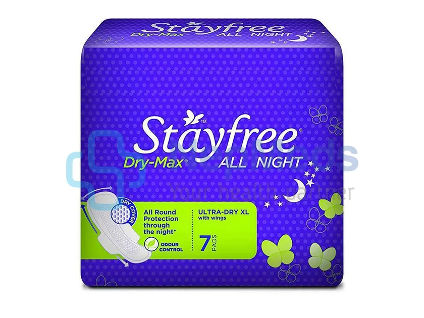 Original price was: ₨ 160.00.₨ 144.00Current price is: ₨ 144.00.Stayfree Dry-Max All Night Ultra-Dry XL(7Pads)